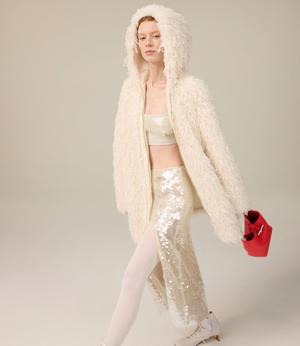 Between light and frost, our Parisian glides across the ice, enveloped in warmth and shimmer.